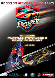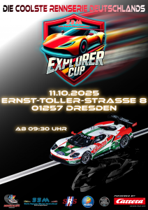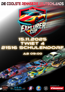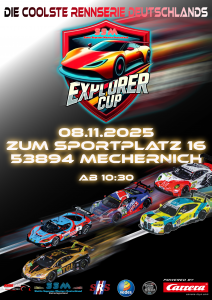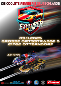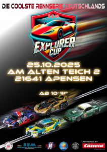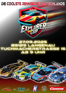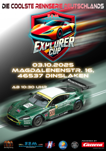 Herzlich Willkommen, hier könnt ihr euch zu den Terminen einloggen. Die SSM freut sich auf die zweite Saison des Explorer Cups, der nun wieder dafür sorgt, dass es deutschlandweit zu Slotcarfieber kommt. Bild mit dem passenden Datum anklicken, dann werdet ihr direkt weitergeleitet.Mit der Meldung zu einem der Rennen erklären sich die Teilnehmer auch bereit, dass ihre Bilder und Namen genutzt werden, um in Bild, Ton und Film auf unseren Seiten und Kanälen zu finden sind. (Sollte ein Teilnehmer in Nachgang, in Zukunft diesem Vorgang widersprechen, werden die Bildrechte, Namensnutzung etc. gelöscht.)