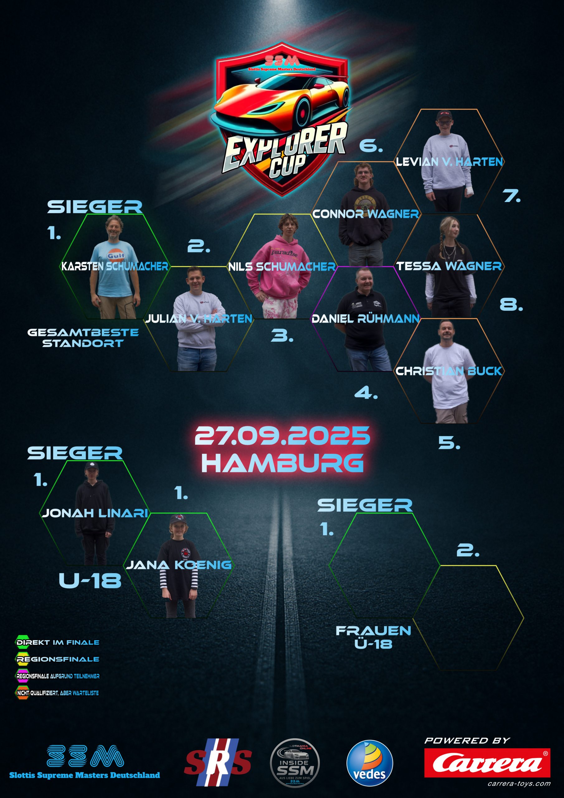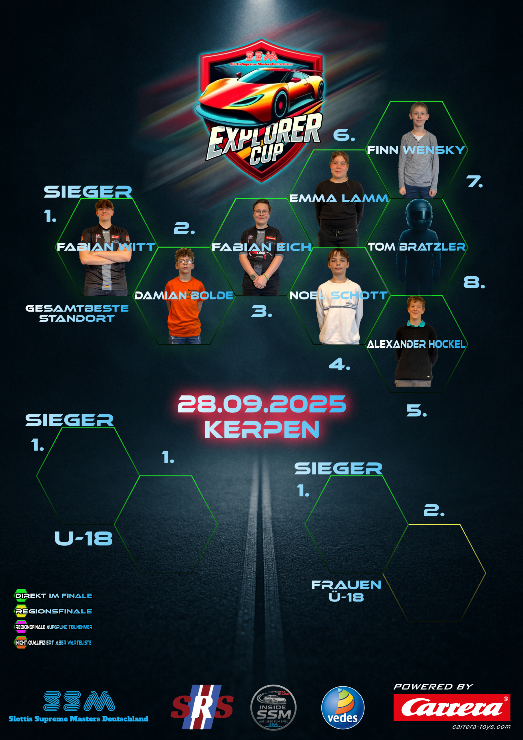 Der Carrera Explorer Cup ist die größte deutsche digitale Rennserie und erstreckt sich über viele Bundesländer. Der CEC zeichnet sich durch einfache Regeln aus, welche jedoch dafür sorgen, dass unsere Teilnehmer in einem engen Streuungsfenster liegen. Hier sind unsere Ergebnisse der aktuellen Saison zu finden.